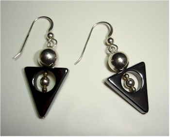 | High polish steel gray hematite and silver earrings. |