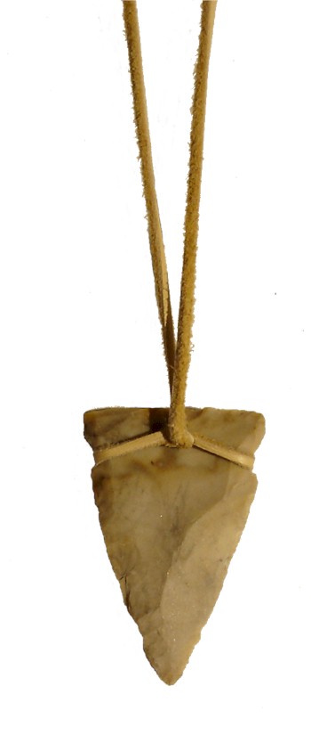 Arrowhead replica on suede leather cord.