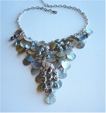 necklace. Silvery pale iridescent icy