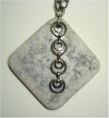 Double-circles in pewter overlay the jasper to reflect and enhance the