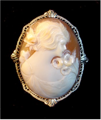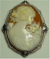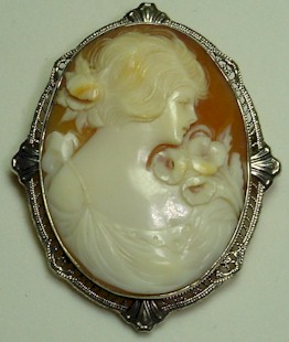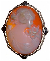 on an ornate filigree-design Silver frame setting. Cameo has both a